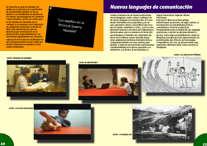 Aprovechando que los alumnos de Tercer año han trabajado la temática del centenario del inicio de la Primera Guerra Mundial desde otras asignaturas (Historia, Formación Ética y Ciudadana) partimos de esos saberes para diseñar y elaborar producciones audiovisuales contextualizadas en la época, apelando a la animación, a la ficción, al documental y a juegos interactivos, dejando aflorar emociones .