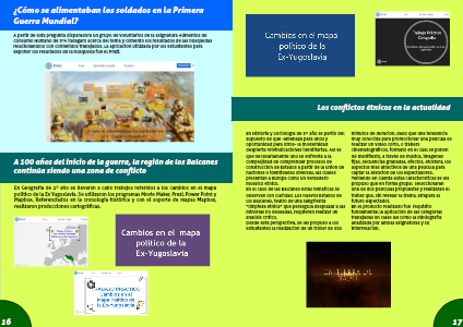 En Geografía de 2º año se llevaron a cabo trabajos referidos a los cambios en el mapa político de la Ex Yugoslavia. Se utilizaron los programas Movie Maker, Prezi, Power Point y Mapbox. Referenciados en la cronología histórica y con el soporte de mapas Mapbox, realizaron producciones cartográficas.