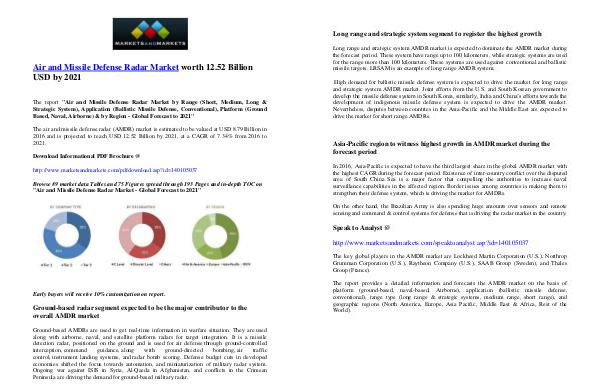 "Air and Missile Defense Radar Market - Global Forecast to 2021"