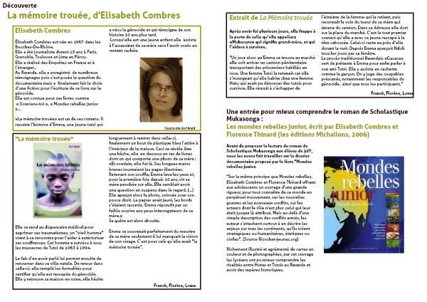 «La mémoire trouée» est un de ses romans. Il raconte l’histoire d’Emma, une jeune tutsi qui a vécu le génocide et qui témoigne de son histoire 10 ans plus tard.