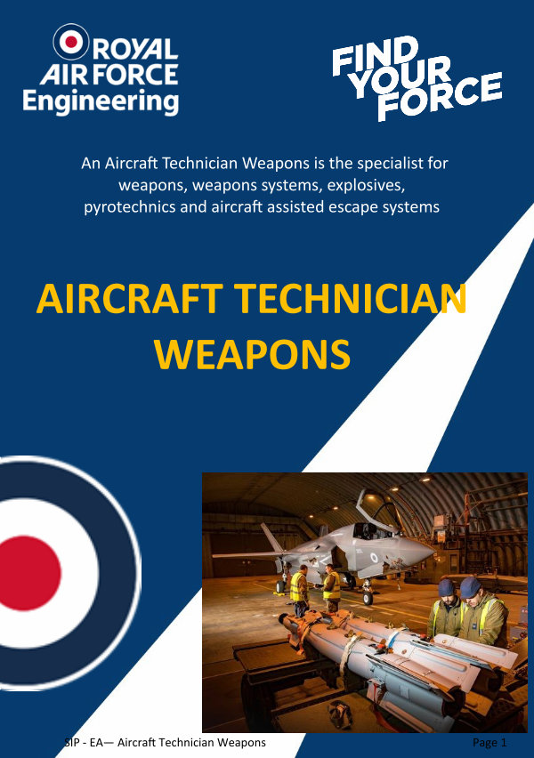 An Aircraft Technician Weapons is the specialist for weapons, weapons systems, explosives, pyrotechnics and aircraft assisted escape systems