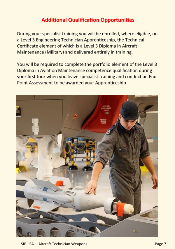 During your specialist training you will be enrolled, where eligible, on a Level 3 Engineering Technician Apprenticeship, the Technical Certificate element of which is a Level 3 Diploma in Aircraft Maintenance( Military) and delivered entirely in training.
