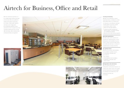 We have extensive experience in air conditioning for offices and retail environments. We are qualified to install and maintain heat pumps, air curtains, chilled water systems, cold stores and refrigeration. Air conditioning systems can be provided to cover a single area or the complete building and we can also offer plumbing, water treatment and complete facilities management.