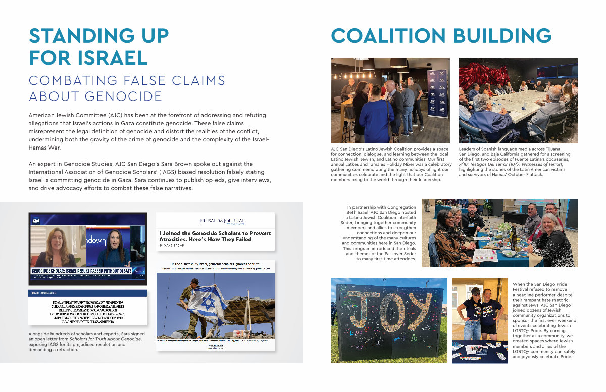 An expert in Genocide Studies, AJC San Diego’ s Sara Brown spoke out against the International Association of Genocide Scholars’( IAGS) biased resolution falsely stating Israel is committing genocide in Gaza. Sara continues to publish op-eds, give interviews, and drive advocacy efforts to combat these false narratives.