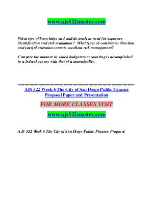 AJS 522 Week 6 The City of San Diego Public Finance Proposal