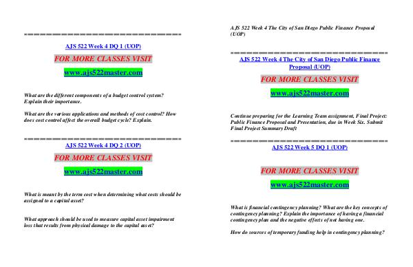 AJS 522 Week 4 The City of San Diego Public Finance Proposal