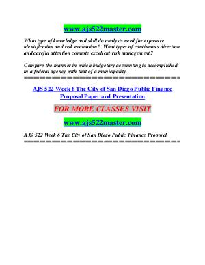 AJS 522 Week 6 The City of San Diego Public Finance Proposal