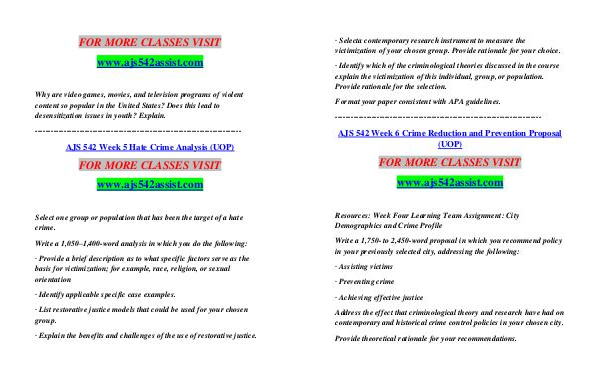 AJS 542 Week 6 Crime Reduction and Prevention Proposal( UOP)