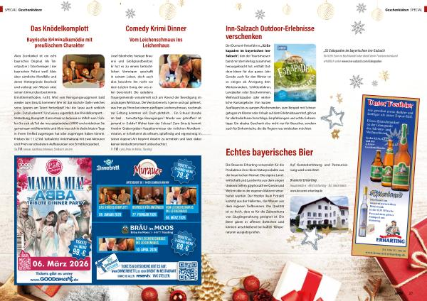 Der Dumont-Reiseführer „ 52 Eskapaden im bayerischen Inn- Salzach“, den der Tourismusverband mit dem Verlag zusammen herausgebracht hat, enthält Outdoor-Ideen für das ganze Jahr. Gerade auch für den Winter ist so einiges als Anregung drin: Winterwandern, Schlittenfahren, Langlaufen oder Eisschwimmen, Weihnachtszauber oder winterliche Kursangebote. Von kurzen Ausflügen bis zu ganzen Wochenenden, zum Beispiel mit Schweigetagen im Kloster oder Urlaub auf dem Erlebnisbauernhof, gibt es für alle Bedürfnisse Vorschläge, Empfehlungen und echte Geheimtipps. Ein ideales Geschenk also nicht nur für Besucher, sondern auch für Einheimische, die die Region neu entdecken möchten.