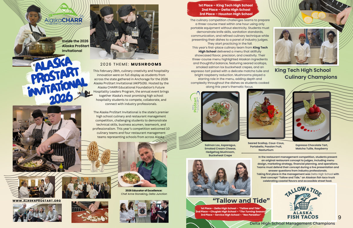 This February 28th, culinary creativity and hospitality innovation were on full display as students from across the state gathered in Anchorage for the 2026 Alaska ProStart Invitational( AKPSI26). Hosted by the Alaska CHARR Educational Foundation’ s Future Hospitality Leaders Program, the annual event brings together Alaska’ s most promising high school hospitality students to compete, collaborate, and connect with industry professionals.