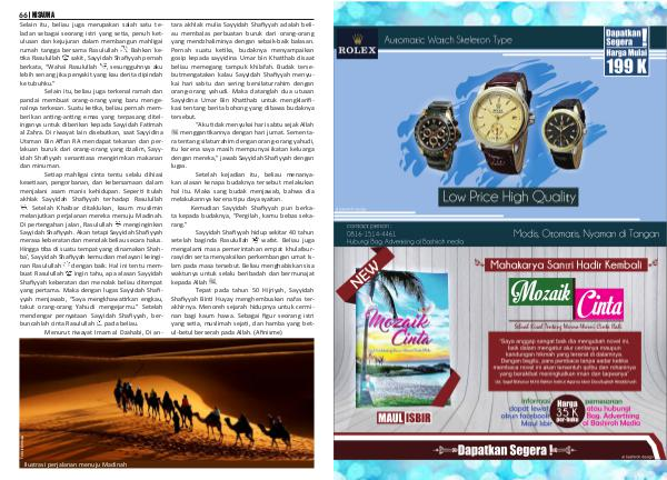 Setiap mahligai cinta tentu selalu dihiasi kesetiaan, pengorbanan, dan kebersamaan dalam menjalani asam manis kehidupan. Seperti itulah akhlak Sayyidah Shafiyyah terhadap Rasulullah