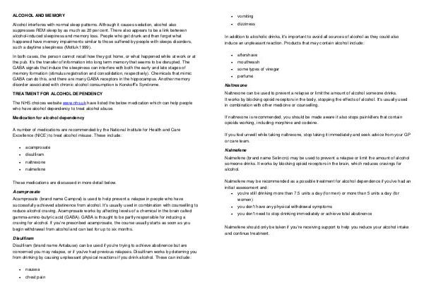 The NHS choices website www. nhs. uk have listed the below medication which can help people who have alcohol dependency to treat alcohol abuse.