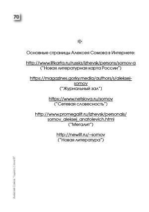 (“ Журнальный зал ”) https :// www . netslova . ru / somov (“ Сетевая словесность ”)