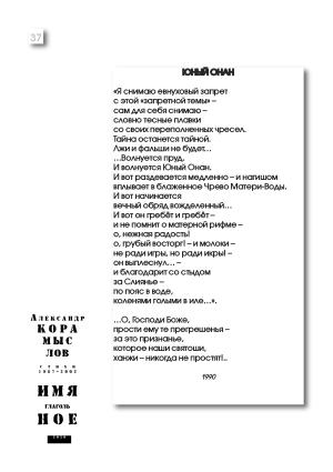 « Я снимаю евнуховый запрет с этой « запретной темы » – сам для себя снимаю – словно тесные плавки со своих переполненных чресел . Тайна останется тайной . Лжи и фальши не будет … … Волнуется пруд . И волнуется Юный Онан . И вот раздевается медленно – и нагишом вплывает в блаженное Чрево Матери-Воды . И вот начинается вечный обряд вожделенный … И вот он гребёт и гребёт – и не помнит о матерной рифме – о , нежная радость ! о , грубый восторг ! – и молоки – не ради игры , но ради икры ! – он выплеснул … – и благодарит со стыдом за Слиянье – по пояс в воде , коленями голыми в иле …».