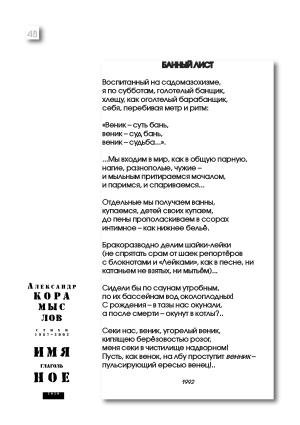 Секи нас , веник , угорелый веник , кипящею берёзовостью розог , меня секи в чистилище надворном ! Пусть , как венок , на лбу проступит венник – пульсирующий ересью венец !..