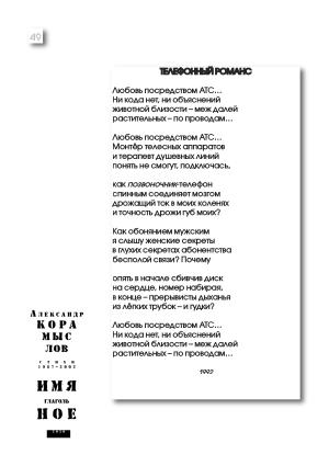 Любовь посредством АТС … Ни кода нет , ни объяснений животной близости – меж далей растительных – по проводам …