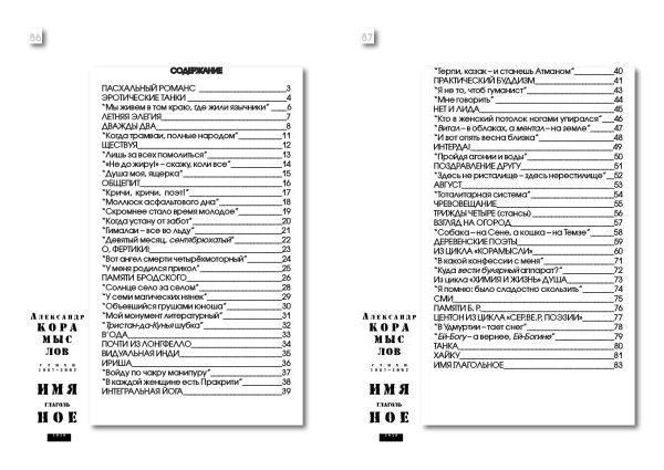 “ Терпи , казак – и станешь Атманом ”__________ 40 ПРАКТИЧЕСКИЙ БУДДИЗМ ____________________ 41 “ Я не то , чтоб гуманист ”______________________ 43 “ Мне говорить ” ______________________________ 44 НЕТ И ЛИДА __________________________________ 45 “ Кто в женский потолок ногами упирался ”___ 46 “ Витал – в облаках , а ментал – на земле ”______ 47 “ И вот опять весна близка ”___________________ 48 ИНТЕРДА !____________________________________ 49 “ Пройдя агонии и воды ”______________________ 50 ПОЗДРАВЛЕНИЕ ДРУГУ ________________________ 51 “ Здесь не ристалище – здесь нерестилище ”__ 52 АВГУСТ _______________________________________ 53 “ Тоталитарная система ”_____________________ 54 ЧРЕВОВЕЩАНИЕ ______________________________ 55 ТРИЖДЫ ЧЕТЫРЕ ( стансы ) _____________________ 56 ВЗГЛЯД НА ОГОРОД __________________________ 57 “ Собака – на Сене , а кошка – на Темзе ”______ 58 ДЕРЕВЕНСКИЕ ПОЭТЫ _________________________ 59 ИЗ ЦИКЛА « КОРАМЫСЛИ »_____________________ 60 “ В какой конфессии с меня ”__________________ 71 “ Куда вести булярный аппарат ?”_____________ 72 Из цикла « ХИМИЯ И ЖИЗНЬ » ДУША ____________ 73 “ Я помню : было сладостно скользить ”________ 74 СМИ _________________________________________ 75 ПАМЯТИ Б . Р .__________________________________ 76 ЦЕНТОН ИЗ ЦИКЛА « СЕР . ВЕ . Р . ПОЭЗИИ »________ 77 “ В Удмуртии – тает снег ”______________________ 78 “ Ей-Богу – а вернее , Ей-Богине ”_______________ 79 ТАНКА ________________________________________ 80 ХАЙКУ _______________________________________ 81 ИМЯ ГЛАГОЛЬНОЕ ____________________________ 83