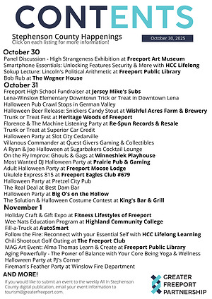 If you would like to submit an event to the weekly All In Stephenson County digital publication, email your event information to tourism@greaterfreeport.com.