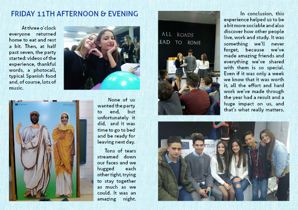 In conclusion, this experience helped us to be a bit more sociable and also discover how other people live, work and study. It was something we’ll never forget, because we’ve made amazing friends and everything we’ve shared with them is so special. Even if it was only a week we know that it was worth it, all the effort and hard work we’ve made through the year had a result and a huge impact on us, and that’s what really matters.