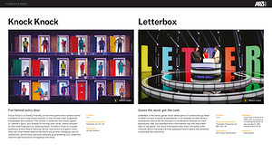 Knock Knock is a family-friendly, prime time game show where teams compete to win a big money jackpot in the ultimate test of general knowledge and memory. The format is based on the classic game of‘ memory pairs’, but instead of turning over cards, teams attempt to find matching pairs by opening doors. Filmed in front of a studio audience, Knock Knock features 18 life-size doors on a giant, multilevel set. And hidden behind the doors are an ever-changing cast of celebrities, performers and even animals, guaranteeing fun, surprises and mini performances throughout the show. |