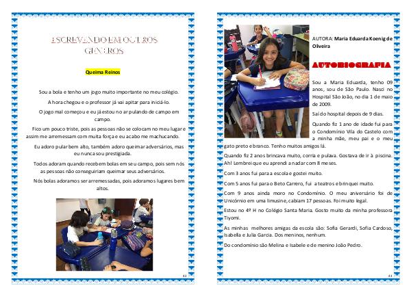 Estou no 4º H no Colégio Santa Maria. Gosto muito da minha professora