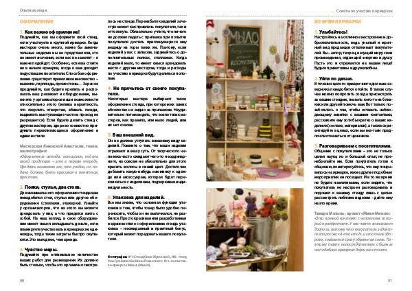 Общение с покупателями – это не только целая наука, но и большой опыт, не пренебрегайте им. Если покупатель готов к общению, поинтересуйтесь, что ему понравилось на ярмарке, какие другие подобные мероприятия он посещает. И в то же время не будьте навязчивыми, если видите, что покупатель не настроен разговаривать и подошел к вашему стенду лишь с целью рассмотреть поближе изделия – дайте ему на это время.