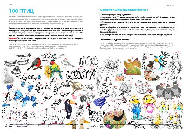 Для второго номера мы рисовали вместе с нашими читателями птиц – как существующих в природе, так и выдуманные виды. Всего нам прислали больше 520 пернатых: разноцветных и монохромных, нарисованных карандашом и акварелью, фломастерами и маркерами … Мы гордимся нашими читателями и предлагаем вам посмотреть на нашу подборку!