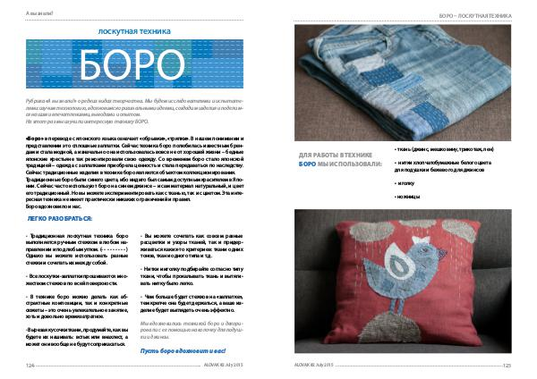 • Традиционная лоскутная техника боро выполняется ручным стежком в любом направлении и под любым углом.(---------) Однако вы можете использовать разные стежки и сочетать их между собой.