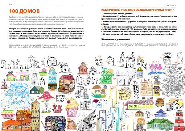 Для третьего номера мы рисовали вместе с нашими читателями дома – большие и маленькие, реальные и сказочные. Всего нам прислали больше 400 « объектов недвижимости »: разноцветных и монохромных, нарисованных карандашом и акварелью, фломастерами и маркерами … Мы гордимся всеми, кто не поленился и выполнил это очень полезное и занимательное упражнение. Предлагаем посмотреть подборку лучших работ, присланных нам!