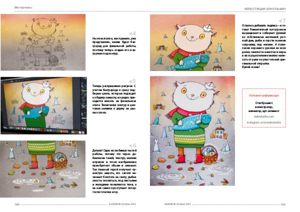 Детали! Одна из любимых частей работы, потому что через добавление теней, текстур, мелких штрихов и точек изображение приобретает объем и оживает. Так главный герой получает пушистую шерсть, его сапоги начинают блестеть на свету, рыбьи хвосты лосниться, под листьями и желудями появляются тени, а на них самих проступают потертости-точечки и пр.