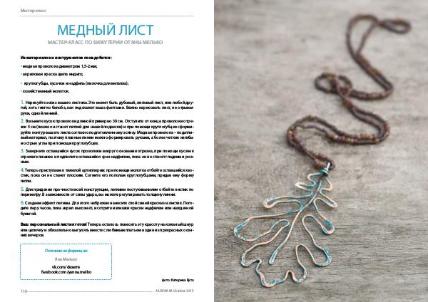 МЕДНЫЙ ЛИСТ МАСТЕР-КЛАСС ПО БИЖУТЕРИИ ОТ ЯНЫ МЕЛЬКО