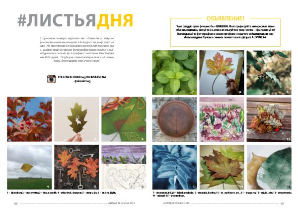 7 – @ nataluka2012; 8 – kalyakamalyaka; 9 – @ natalia _ kvetka; 10 – @_ sunflower _ art _; 11 – @ gayane; 12 – @ julia _ kirr; 13 – @ warmvaria; 14 – @ bygirl; 15 – @ sperrebom.