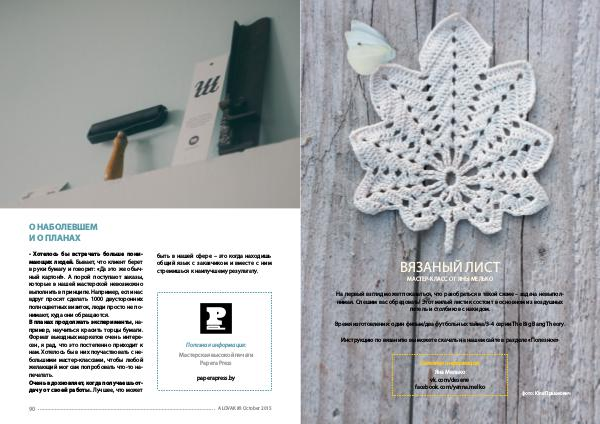 ВЯЗАНЫЙ ЛИСТ МАСТЕР-КЛАСС ОТ ЯНЫ МЕЛЬКО