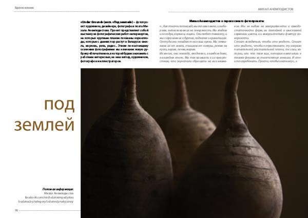 «... Как тысячи лет назад, мы копаем землю, и выбираем, вытаскиваем их на поверхность. Мы кладем их в ведра, корзины, ящики. Они любят темноту, и мы сохраняем их в буртах, подвалах и хранилищах. Оттуда они попадают на наши кухни. Мы отмываем их от земли, очищаем от кожуры, режем на куски, варим, печем, жарим. Их много, они повсюду, ежедневно, в каждом доме, на каждом столе. Мы так привыкли к их присутствию, что перестали обращать на них внимание. Мы не видим ни завершённости и самодостаточности форм, ни спокойной и изысканной гармонии цвета, ни микроэстетики фактур поверхности. Стоит вглядеться, чтобы это увидеть. Стоит это увидеть, чтобы почувствовать ту энергию питательной растительной плоти, те соки, калории, или что там еще, которые накопились в тканях флоэмы за тысячелетия генезиса. И стоит попробовать. Просто, чтобы знать вкус...».