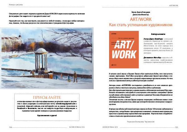 Авторы книги « ART / WORK » постарались разобраться во всех нюансах артрынка и дать ответы на вопросы, важные для любого художника. Как обустроить мастерскую и организовать собственную выставку? Как определить стоимость своих работ и выстроить отношения с галереями? Нужны ли художнику собственный сайт и участие в грантах? Без каких документов не обходится ни одна сделка? Ответам на эти и многие другие вопросы посвящены отдельные главы с комментариями специалистов, имеющих непосредственное отношение к миру искусства.