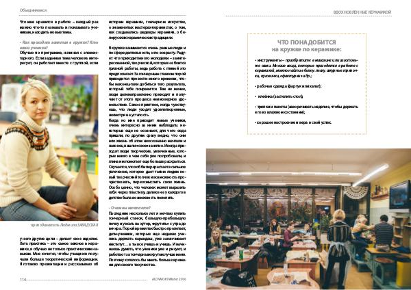 у него другие цели – делает свое изделие. Хоть практика – это самое важное в керамике, я обучаю не только практическим навыкам. Мне хочется, чтобы учащиеся получали больше теоретической информации. Я готовлю презентации и рассказываю об истории керамики, гончарном искусстве, о знаменитых мастерах-керамистах, о том, как создавались шедевры керамики, о белорусских керамических традициях.