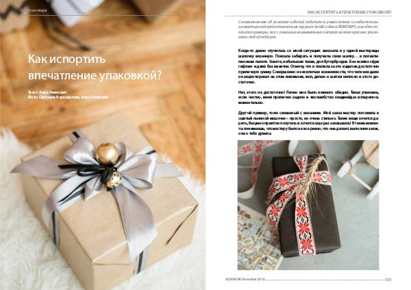 Своим мнением об упаковке изделий поделилась ремесленник и создательница мастерской интеллигентных игрушек Sun & Co Анна ЛЕВКОВИЧ, а заодно показала примеры, как с помощью минимальных затрат можно красиво упаковать любой подарок.