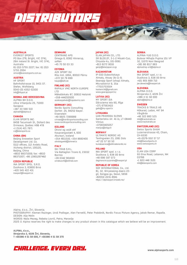 SLOVENIA ALPINA D. O. O. Strojarska 2, 4226 Žiri + 386 4 51 58 000 alpina @ alpina. si