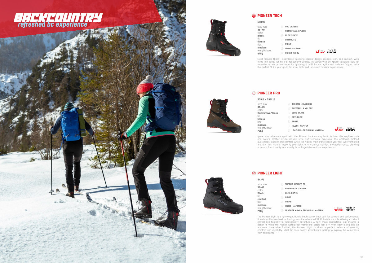 Meet Pioneer TECH – seamlessly blending classic design, modern tech, and comfort. With three flex zones for natural, responsive strides, it ' s paired with an Xplore Rottefella sole for versatile terrain performance. Its lightweight build boosts agility and reduces fatigue. With the perfect fit, it ' s your go-to for style, tech, and top-notch outdoor experiences.