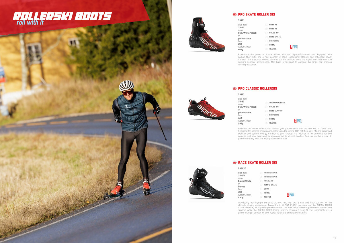 Introducing our high-performance ALPINA PRO RS SKATE cuff and heel counter for the ultimate skating experience. Teamed with ALPINA PULSE midsoles and the ALPINA TEMPO SKATE midsole, it ' s a power-packed combo. The ANATOMIC footbed guarantees comfort and support, while the ALPINA PRIME lacing system ensures a snug fit. This combination is a game-changer, perfect for both recreational and competitive skaters.