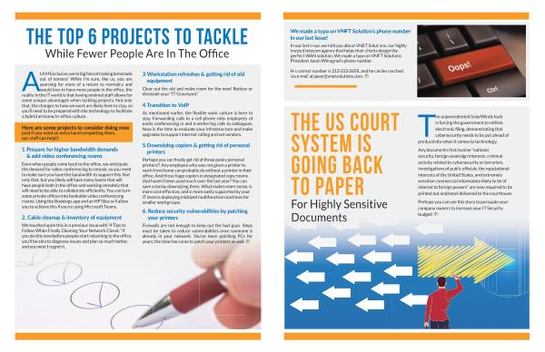 out of lemons ! While I ’ m sure , like us , you are yearning for more of a return to normalcy and would love to have more people in the office , the reality in the IT world is that having minimal staff allows for some unique advantages when tackling projects . Not only that , the changes to how we work are likely here to stay , so you ’ ll need to be prepared with the technology to facilitate a hybrid at-home / in-office culture .