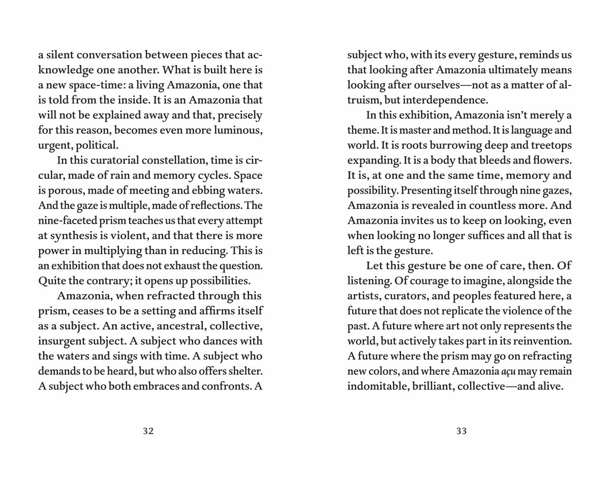 a silent conversation between pieces that acknowledge one another. What is built here is a new space-time: a living Amazonia, one that is told from the inside. It is an Amazonia that will not be explained away and that, precisely for this reason, becomes even more luminous, urgent, political.