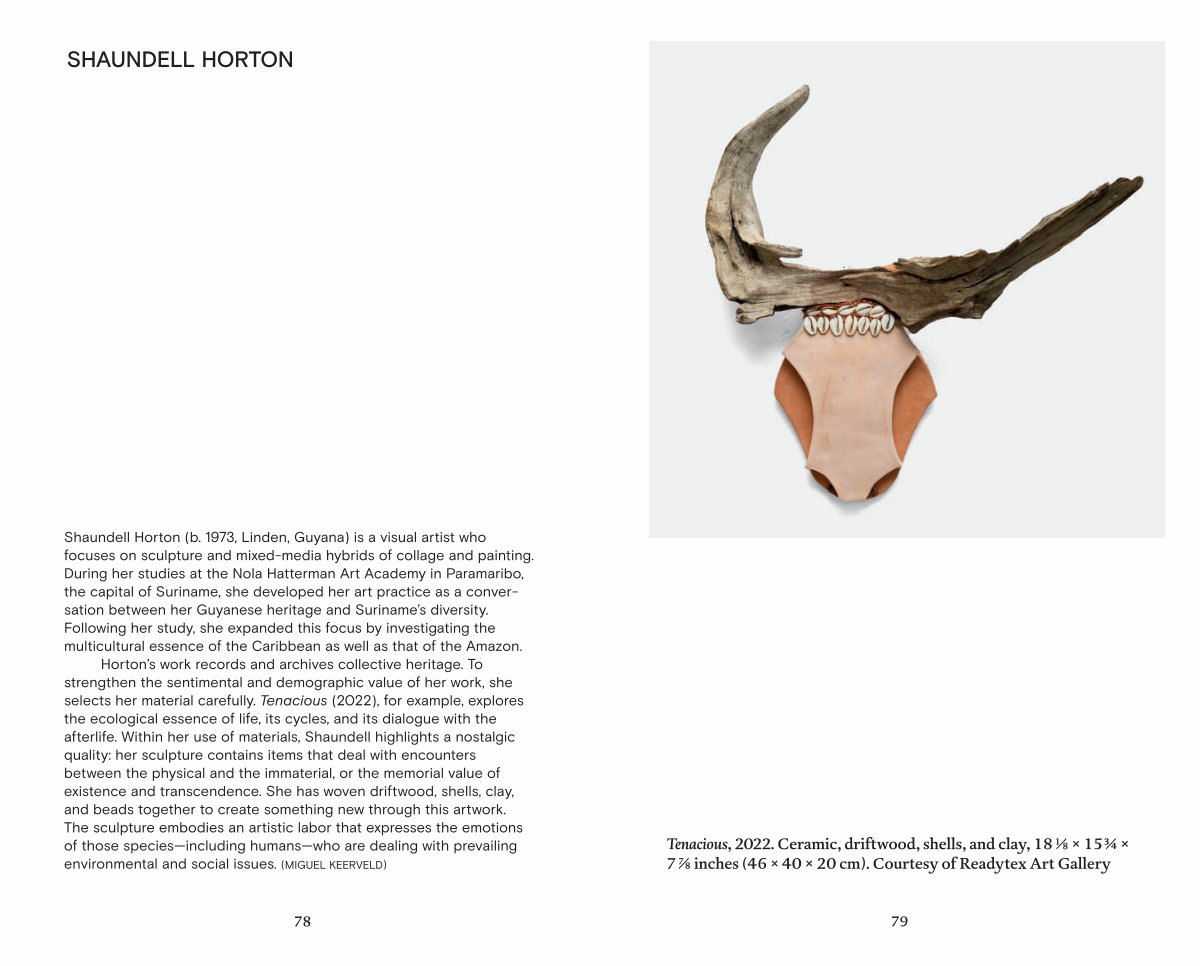 Tenacious, 2022. Ceramic, driftwood, shells, and clay, 18 1 ⁄ 8 × 15 ¾ × 7 7 ⁄ 8 inches( 46 × 40 × 20 cm). Courtesy of Readytex Art Gallery