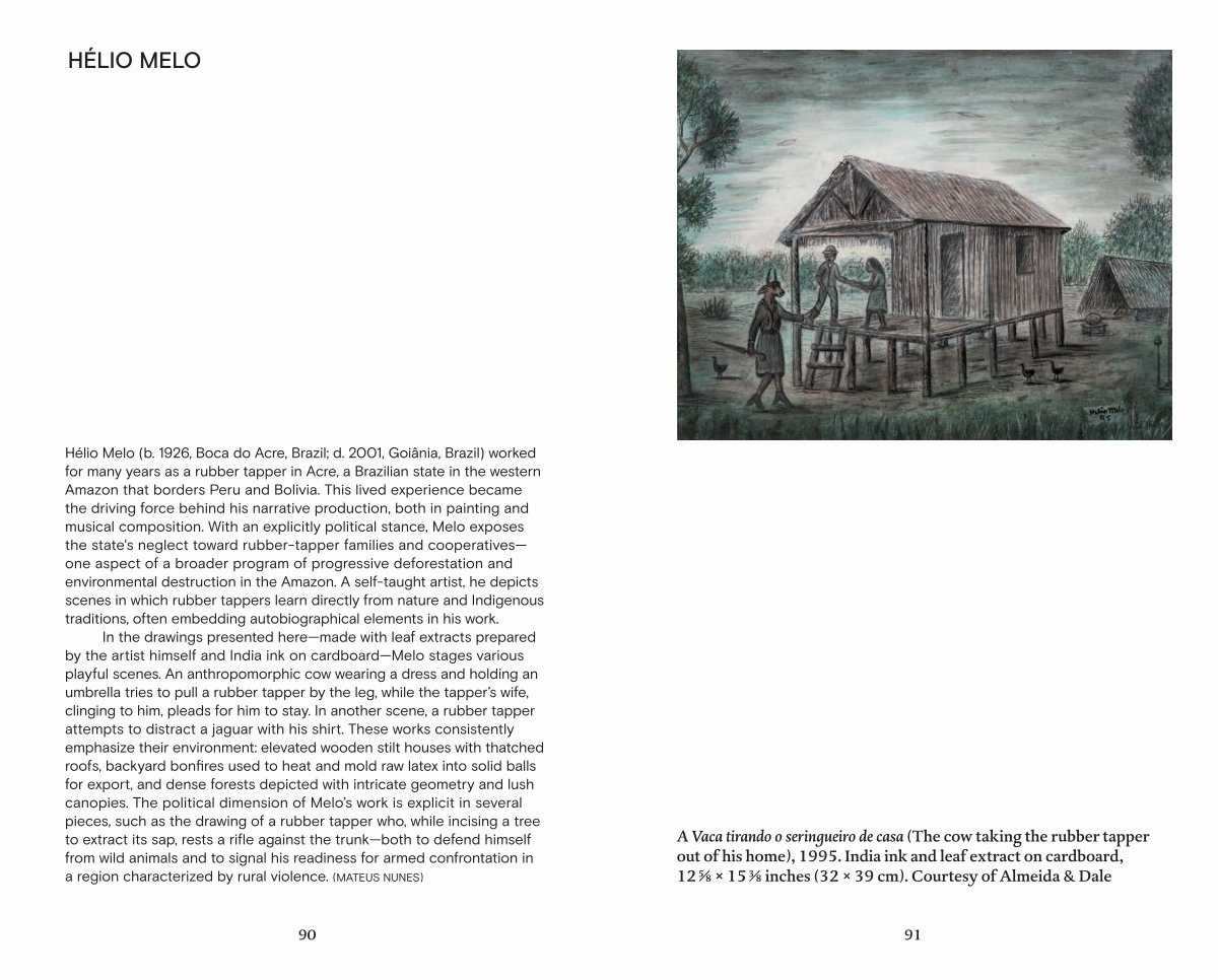 A Vaca tirando o seringueiro de casa( The cow taking the rubber tapper out of his home), 1995. India ink and leaf extract on cardboard, 12 5 ⁄ 8 × 15 3 ⁄ 8 inches( 32 × 39 cm). Courtesy of Almeida & Dale