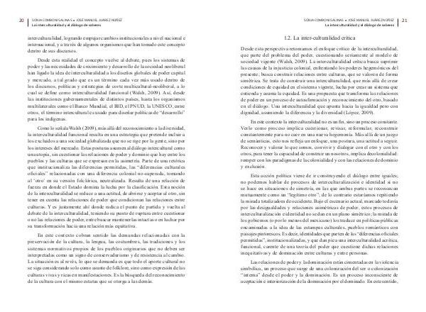 sociedad vigente (Walsh, 2009). La interculturalidad crítica busca suprimir