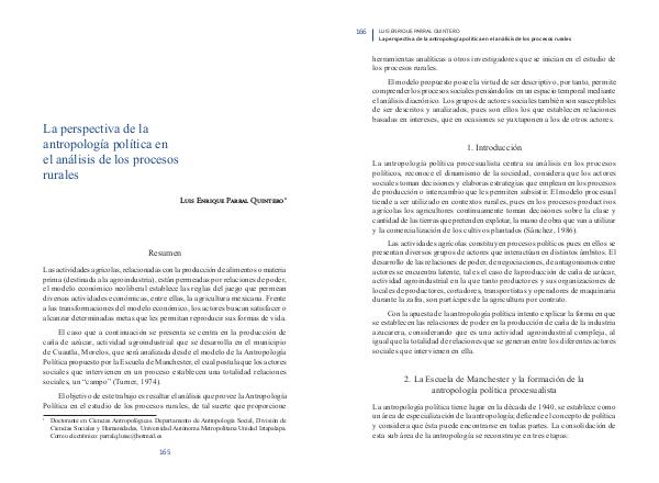 El objetivo de este trabajo es resaltar el análisis que provee la Antropología Política en el estudio de los procesos rurales, de tal suerte que proporcione