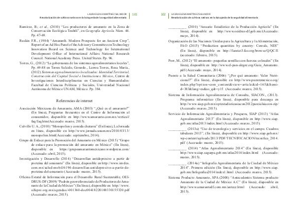 Ramírez, B.; et al.,( 2010)“ Los productores de amaranto en la Zona de Conservación Ecológica Teuhtli”, en Geografía Agrícola. Núm. 44. Pp. 47-69.