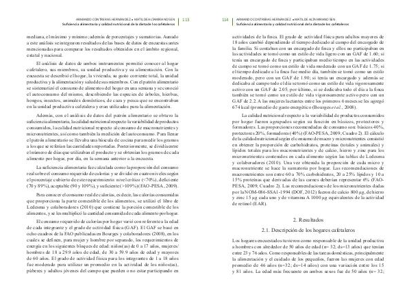 Suficiencia alimentaria y calidad nutricional de la dieta de los cafetaleros