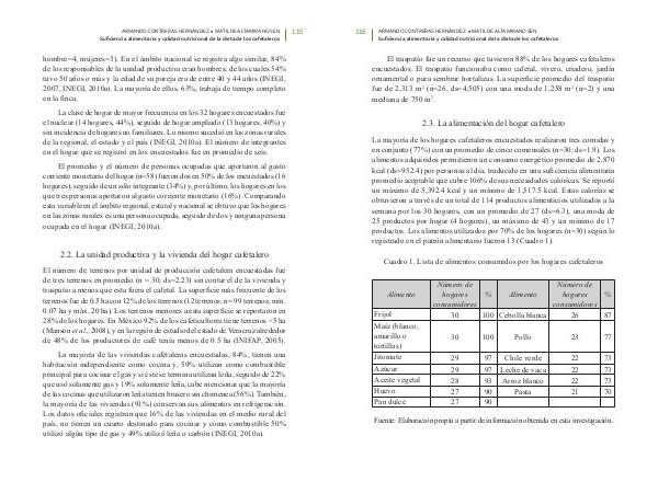 Suficiencia alimentaria y calidad nutricional de la dieta de los cafetaleros