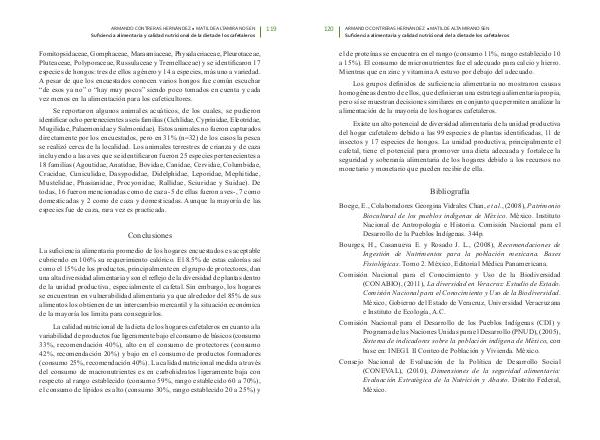Suficiencia alimentaria y calidad nutricional de la dieta de los cafetaleros